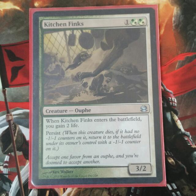 Kitchen Finks MMA MTG Card Kitchen Finks Creature Ouphe When Kitchen Finks enters the battlefield you gain 2 life. Kitchen Finks are good in RockSurvival no need to see how good it is in ANTGobbos its never going to be played in those decks anyway heck even Tarmogoyfs arent played in ANTGoblins. This is one of the best controlmidrange creatures printed since well Venser.